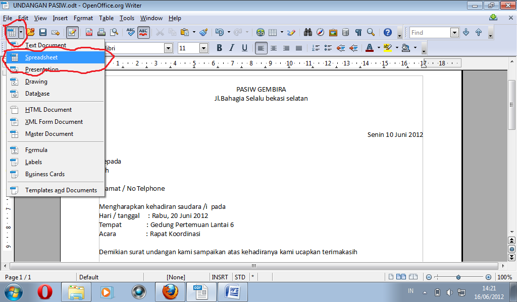 4. Kembali ke data utama di Open Office Writer. Lalu,masukan data